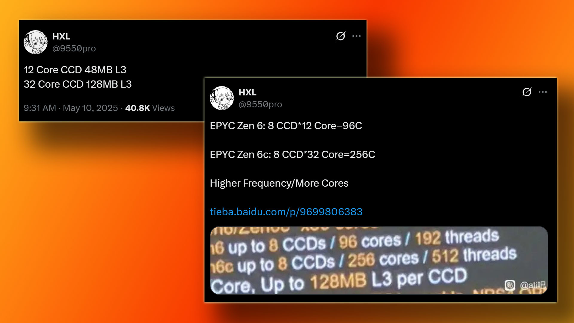 Có vẻ như thông tin này được suy luận từ các rò rỉ gần đây về chip Epyc Zen 6 (hiện đã bị xóa) trên diễn đàn Baidu của Trung Quốc, được chụp lại màn hình bởi 9550pro. Bức ảnh được cho là hiển thị một CPU Epyc 256 nhân Zen 6 trong tương lai dựa trên các nhân Zen 6c trên tám CCD, trong khi một chip Epyc 96 nhân sẽ sử dụng các nhân CPU Zen 6 “full-fat”. Chính chiplet này được cho là có tiềm năng sử dụng trong CPU chơi game cho máy tính để bàn.