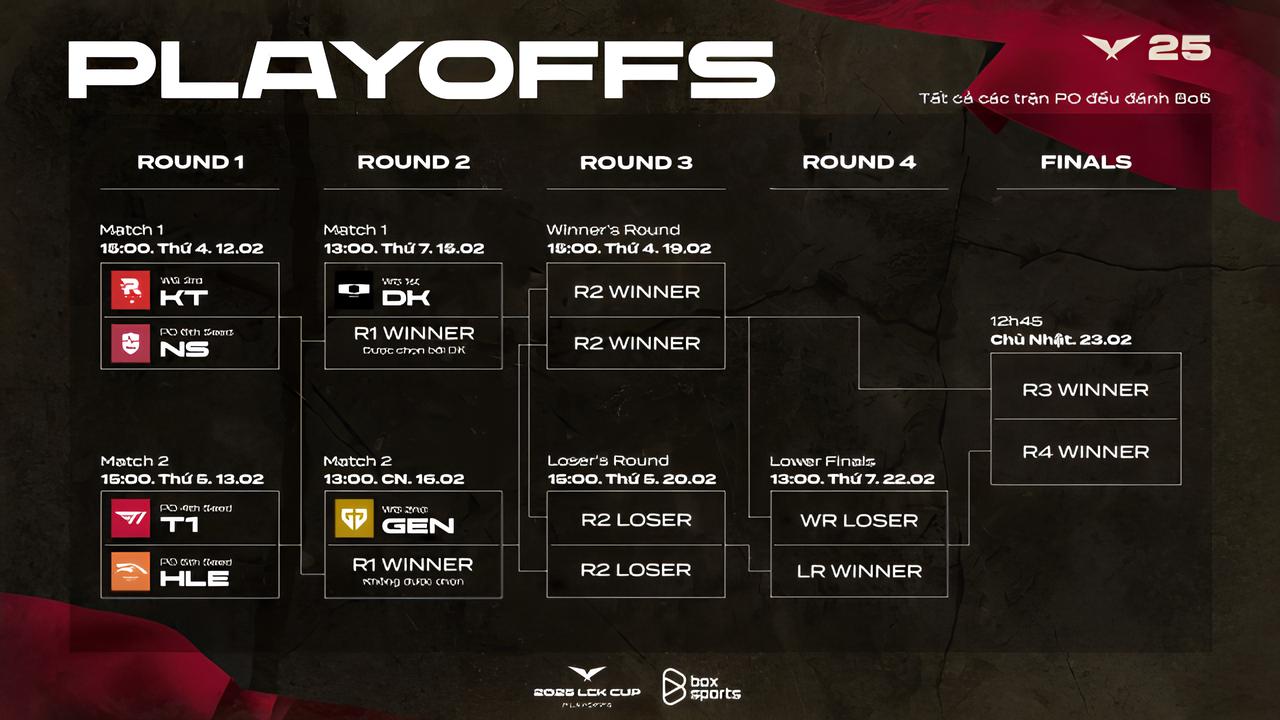Vòng Playoffs LCK Cup 2025 được dự đoán sẽ mang đến những trận đấu LMHT đỉnh cao, đầy căng thẳng và bất ngờ, khi các đội tuyển hàng đầu Hàn Quốc cạnh tranh cho ngôi vương.