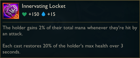 Người sở hữu nhận được hai phần trăm tổng lượng mana bất cứ khi nào họ bị tấn công. Mỗi lần sử dụng kỹ năng sẽ hồi phục 20 phần trăm lượng máu tối đa của chủ nhân trong ba giây. |