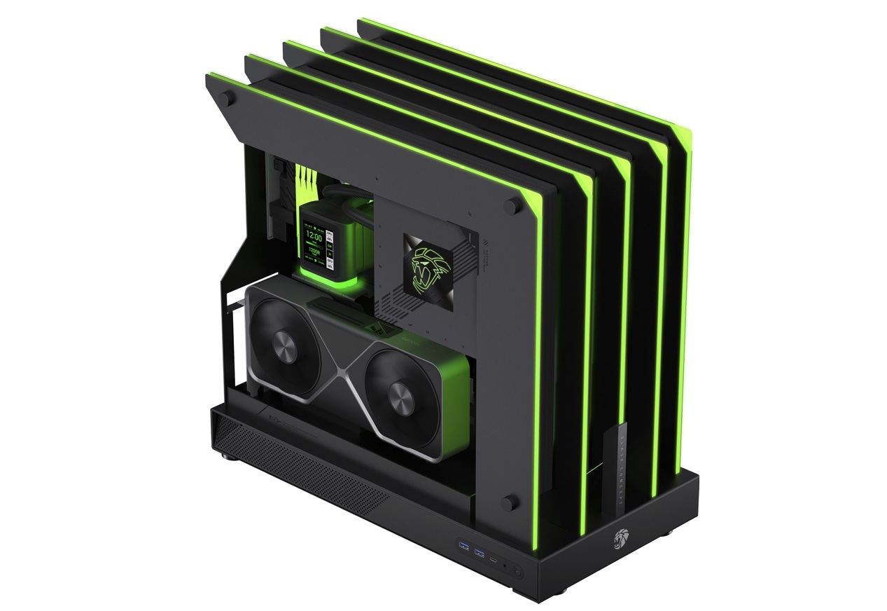 Toàn bộ khung của BLADE CONCEPT được chế tạo bằng công nghệ CNC và cắt laser từ kim loại, mang lại sự chắc chắn tuyệt đối và độ hoàn thiện tỉ mỉ đến từng chi tiết. Một điểm cộng nữa là bảng điều khiển I/O có thể tháo rời và thay đổi vị trí linh hoạt (mặc định ở bên trái, có thể chuyển sang bên phải). Bảng điều khiển này được trang bị hai cổng USB 3.1 và một cổng Type-C Gen2 hiện đại, đáp ứng tốt nhu cầu kết nối của người dùng.