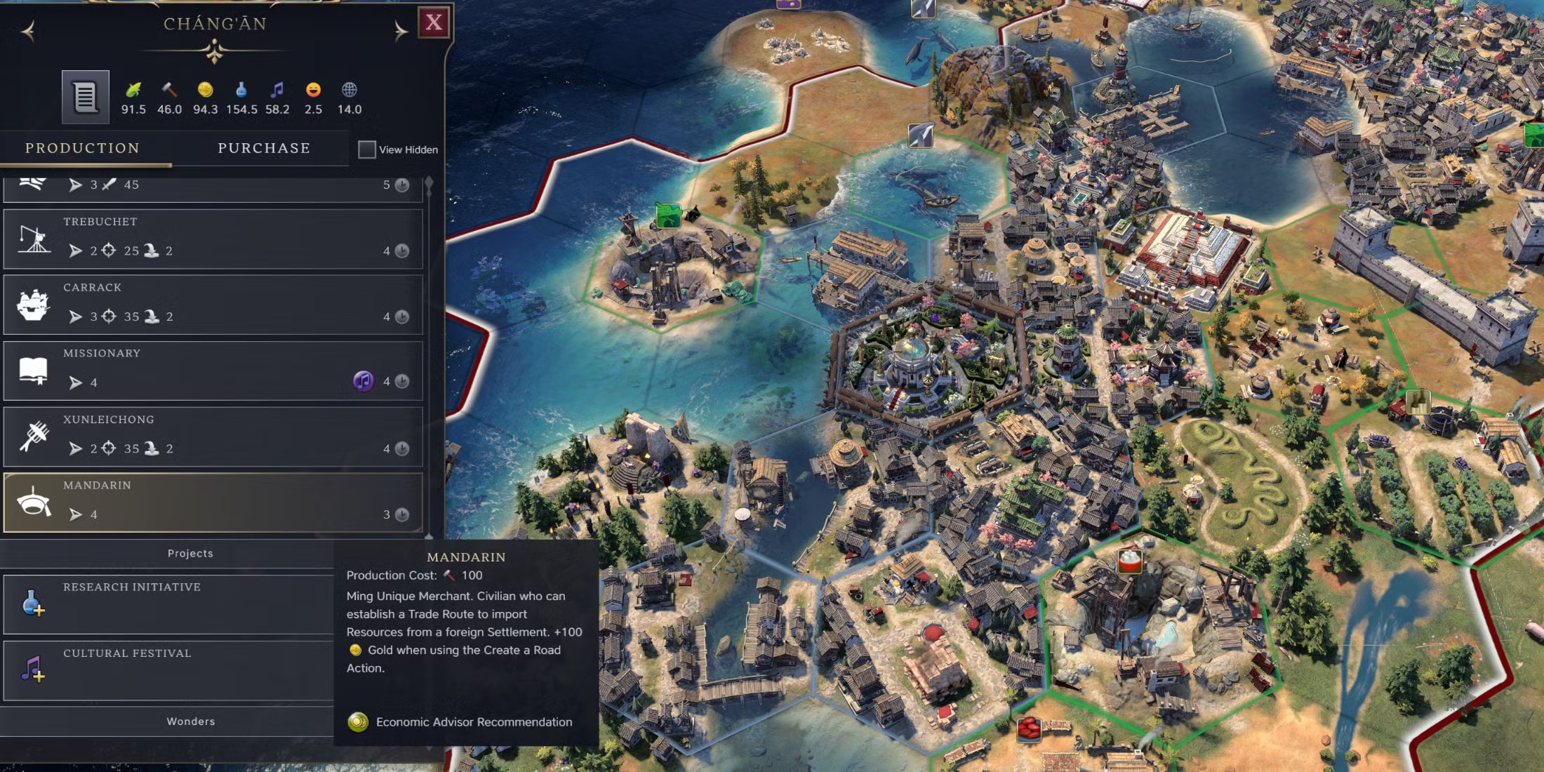 Lưu ý: Không nên mua Thương nhân ở bất kỳ vị trí nào mà không suy nghĩ – hãy mua Thương nhân ở những khu định cư gần với các nền văn minh khác để thiết lập Tuyến đường thương mại nhanh hơn.
