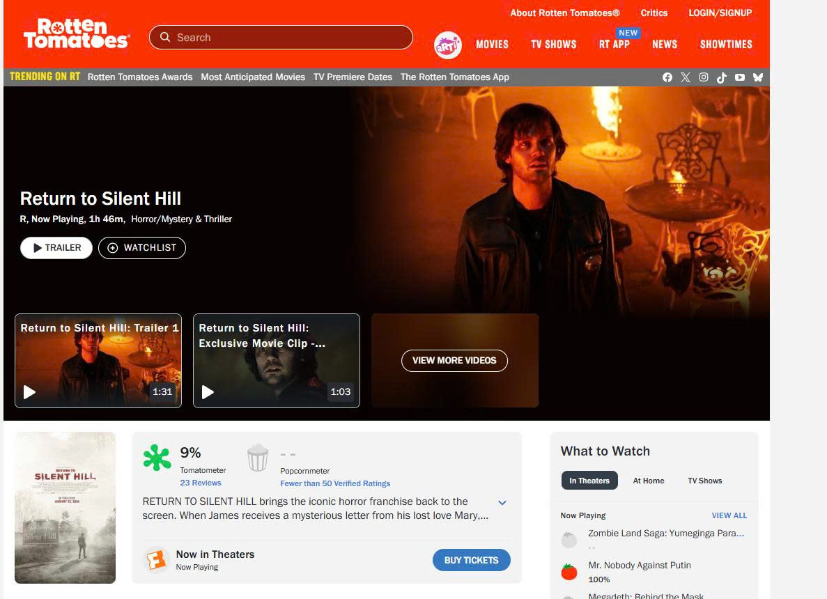 Mặc dù nhận được nhiều kỳ vọng sau sự hồi sinh mạnh mẽ của nguyên tác trò chơi, bản chuyển thể điện ảnh năm 2026 mang tên Return to Silent Hill đang đối mặt với làn sóng chỉ trích dữ dội và chạm đáy về điểm số đánh giá.