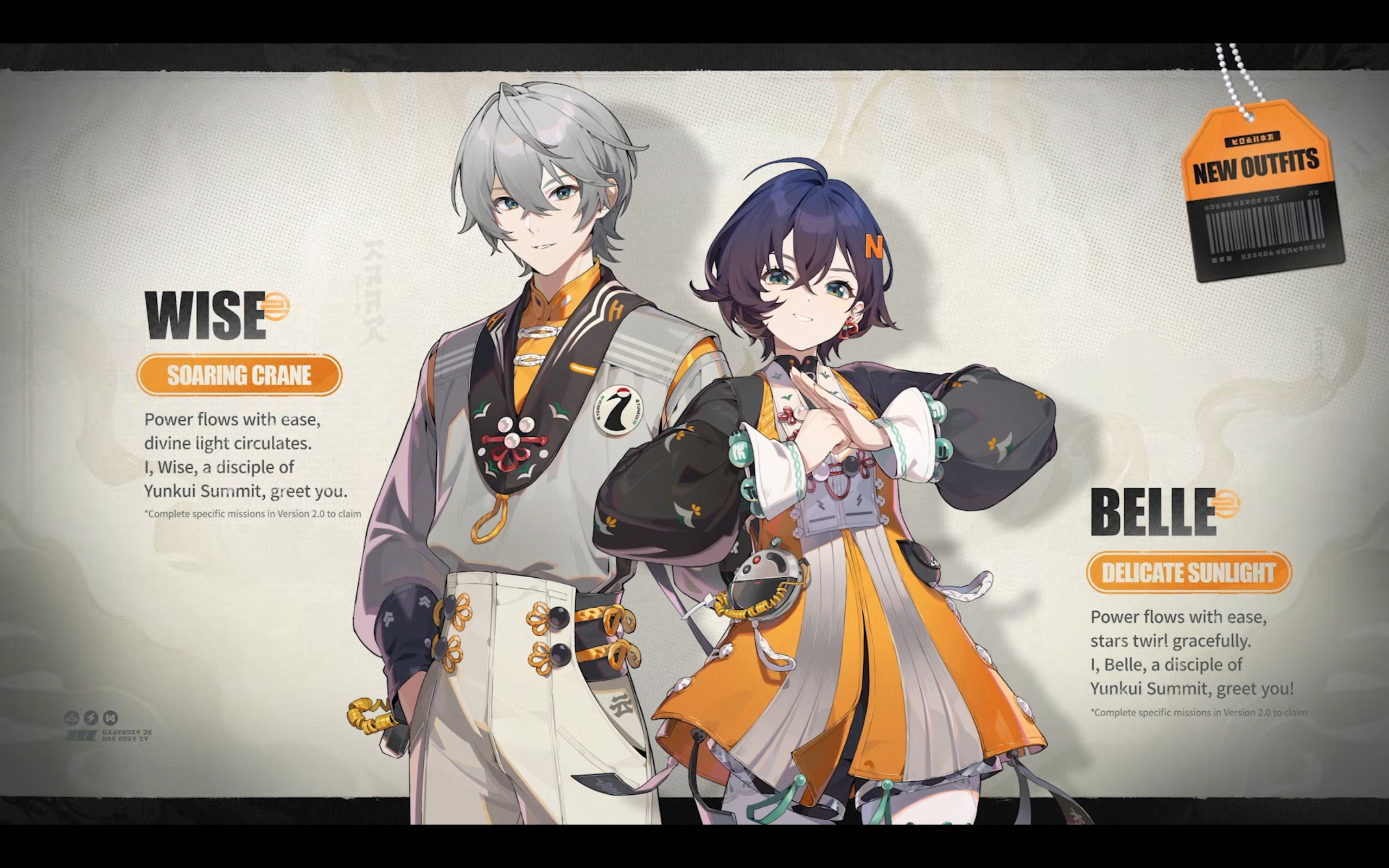 Ngoài ra, bản cập nhật 2.0 còn mang đến các hoạt động sự kiện, cung cấp cho người chơi 1.600 Polychrome và vật phẩm tương đương khoảng ba lần quay 10 lượt trên gacha. Người chơi cũng có cơ hội nhận miễn phí trang phục mới cho Belle mang tên Delicate Sunlight và cho Wise với tên gọi Soaring Crane. Cả hai bộ trang phục này được lấy cảm hứng từ trang phục của cư dân tại khu vực mới Waifei Peninsula, với tông màu chủ đạo là trắng, vàng và đen.
